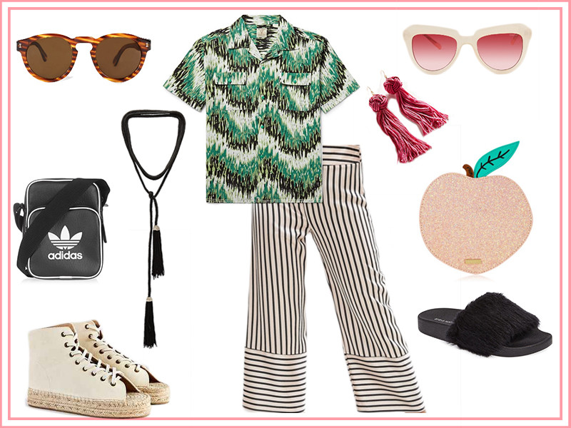 Day 1 and I’m feeling readyyy to be bold. And what better way then with a standout pattern mix & match and a glittery peach crossbody bag?! Slip on some furry slides for that kick-off pool party but then swap for some lace up espadrilles (much more secure 🙃✔️) when heading to the gates.