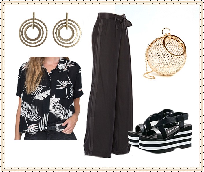 Now thissss is for the ultimate party goer. Some lightweight wide leg trousersΒ paired with a printed button up give the ultimate, DGAF I’m swanky vibes…cause I’m in all black, but cooooooler.πππ Plus literally any outfit with these gold statement earrings is a WINNER.Β πππ