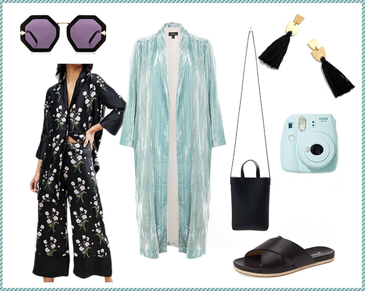 Quite possibly, my favorite of the bunch…I can’t WAIT to bust this out come sun down. This two piece pajama set and velvet duster’s got me feelin’ all kindssssss of desert disco glam fabulousness.πππTrust, if you’re rockin’ this look all eyes will be on YOU. And don’t you dare take off these amazing Karen Walker sunglasses, be that girl with sunglasses at dark – they’re worthy.Β πππΆβ¨