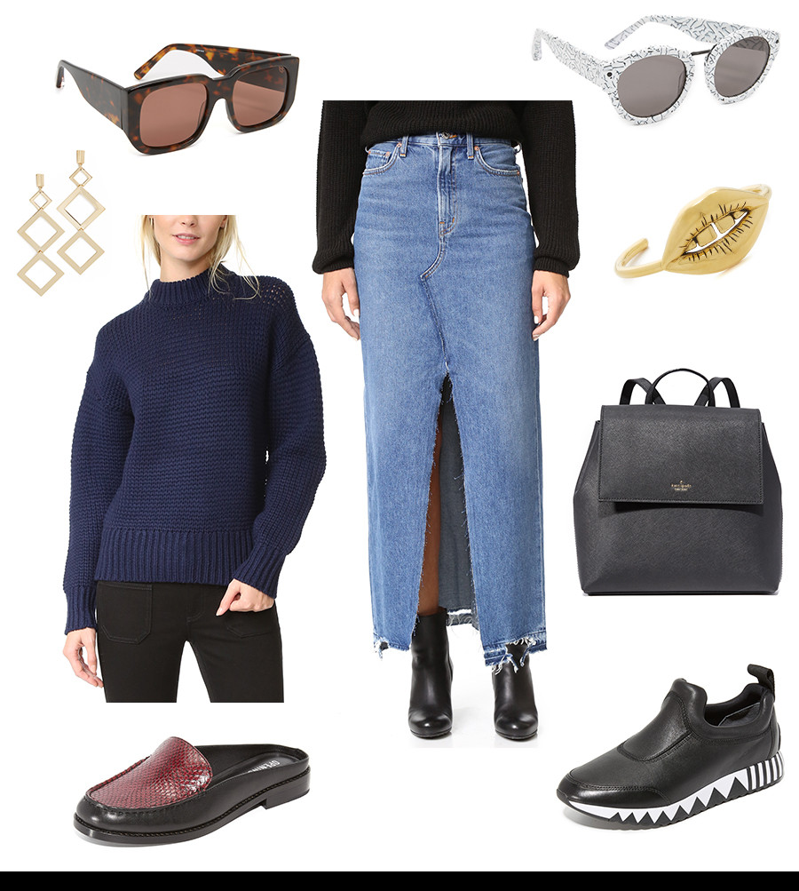 There’s tons of chic minimalist dressers out there, but let’s differentiate from the crowd slightly with an unexpected 90’s twist – v trendy🌟😆🌟 Swap the typical black tones for a 90s grunge denim skirt paired with an oversized DKNY sweater (easily the best 80s-90s brand 🙌💯) If your heading to work? Finish off the look with these classy Open Ceremony mules. Running errands? These seriously tight Tory Burch slip on sneaks. ⚡️👍⚡️