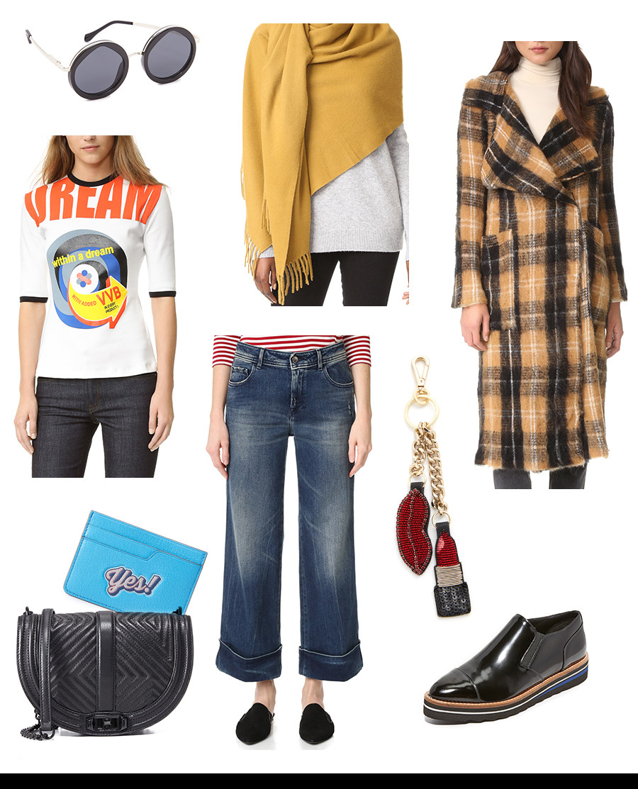 Quite possibly my favorite of the bunch, this soft rocker look is the kind that fuels my confidence fires when I leave the house. 🔥🔥 Plaid is hittin’ harder this FW amongst top street style fashionistas…(I for one have always been a seasonal fan of the print 😏) aka rock this yellow Anaheim Coat like nobody’s biz-nassss. I love an unusual graphic tee, and this tight Victoria Beckham retro tee is amaze, especially tucked into some wide leg denim. Wait…what did you say?! This Rebecca Minkoff saddle bag is the best balance of classy and edgy?? YES! A total win, a bag for any outfit…SLAY! 💃